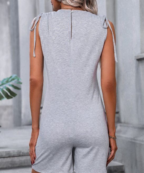 - Drawstring Shoulder Solid Grey Rompers