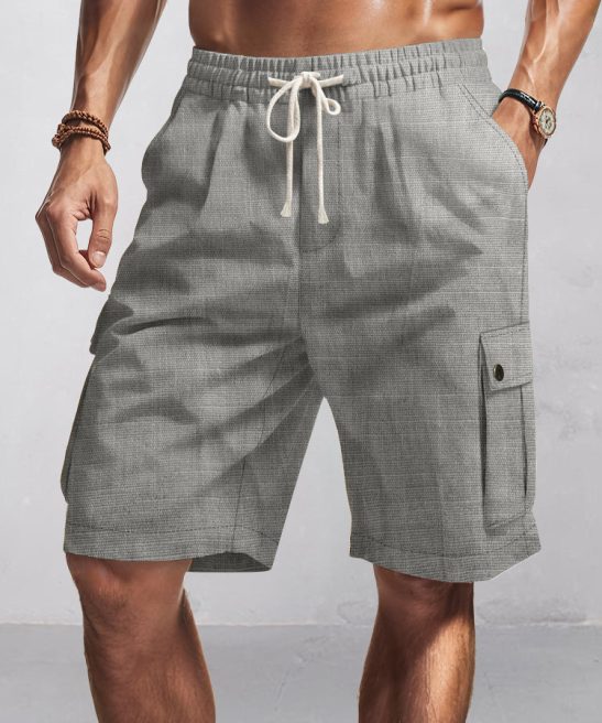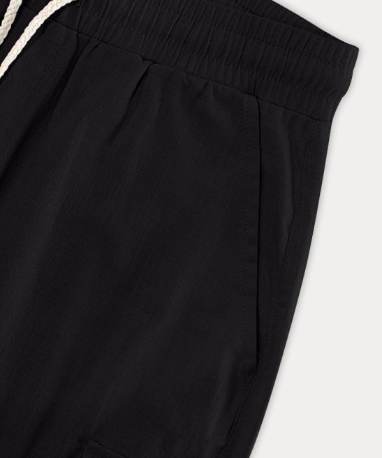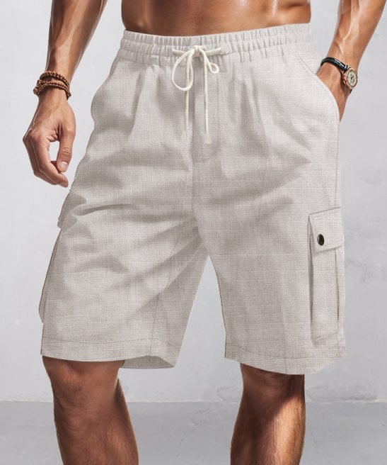 - Design: Elastic waistband with adjustable drawstring. two side pockets and flap cargo pockets. one back pocket