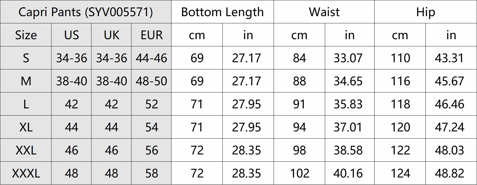 - Available in 3/4 capri pants and mid-length( hits at the knee).